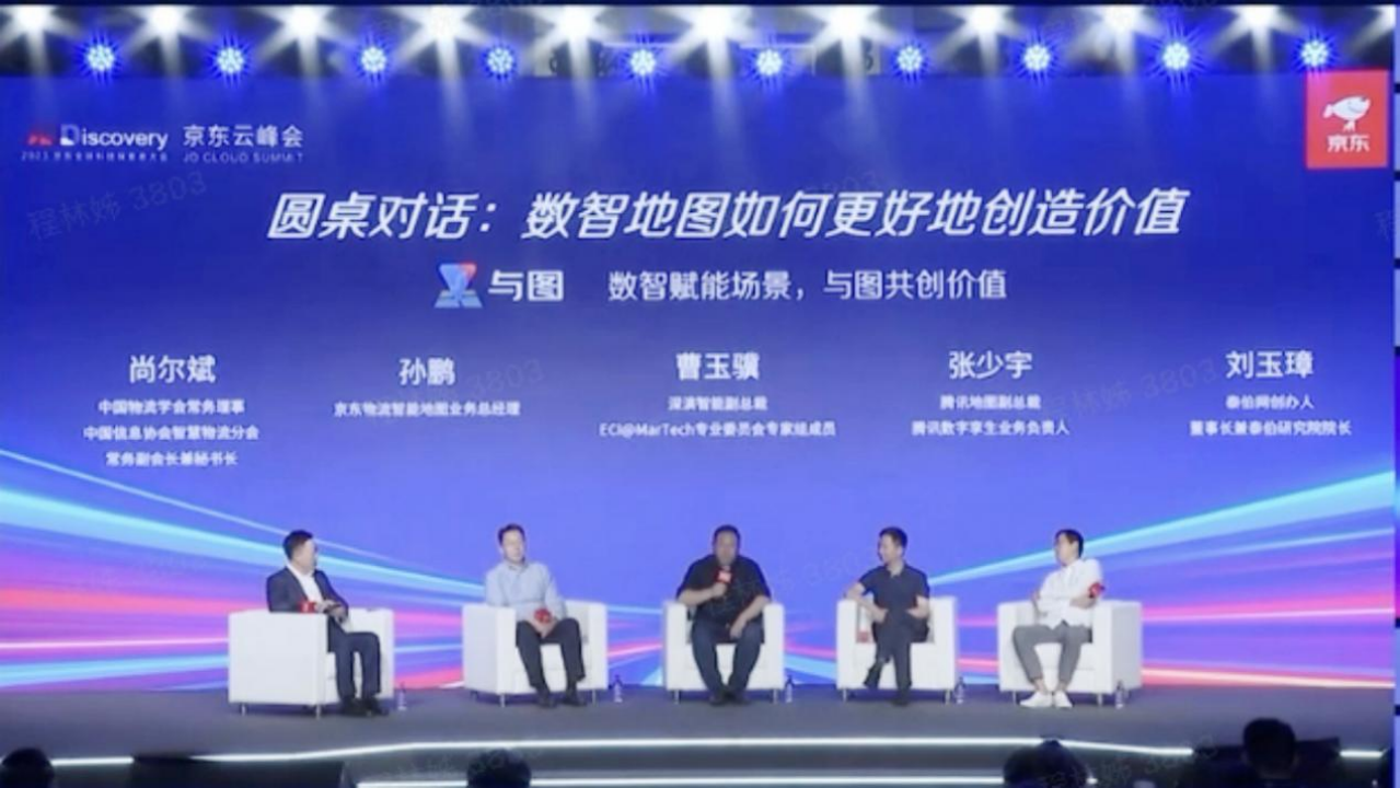 “数智化时代地图应用如何更好地赋能场景创造价值”的圆桌论坛,中间为创世红海智能副总裁曹玉骥